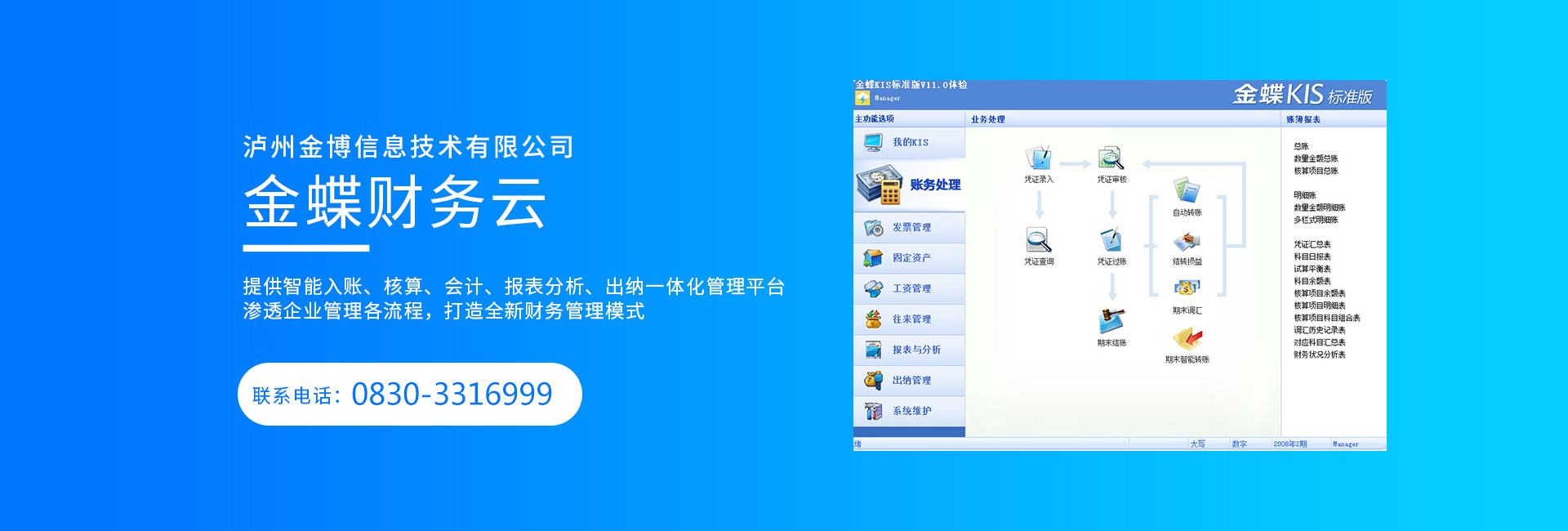瀘州金博信息技術(shù)有限公司是金蝶軟件(中國)有限公司授權(quán)在瀘州地區(qū)從事金蝶軟件經(jīng)銷和技術(shù)服務(wù)的專業(yè)軟件公司,公司自成立以來,在瀘州使用金蝶軟件的客戶已發(fā)展到3000余家,遍及全市、區(qū)、縣的機(jī)關(guān)事業(yè)單位和機(jī)械、化工、運(yùn)輸、礦山、房地產(chǎn)、港口、酒業(yè)等各行各業(yè),為他們在財務(wù)管理、物資管理、生產(chǎn)管理、辦公自動化、人力資源的信息化建設(shè)成功使用金蝶軟件提供了專業(yè)的技術(shù)服務(wù)。同時公...
